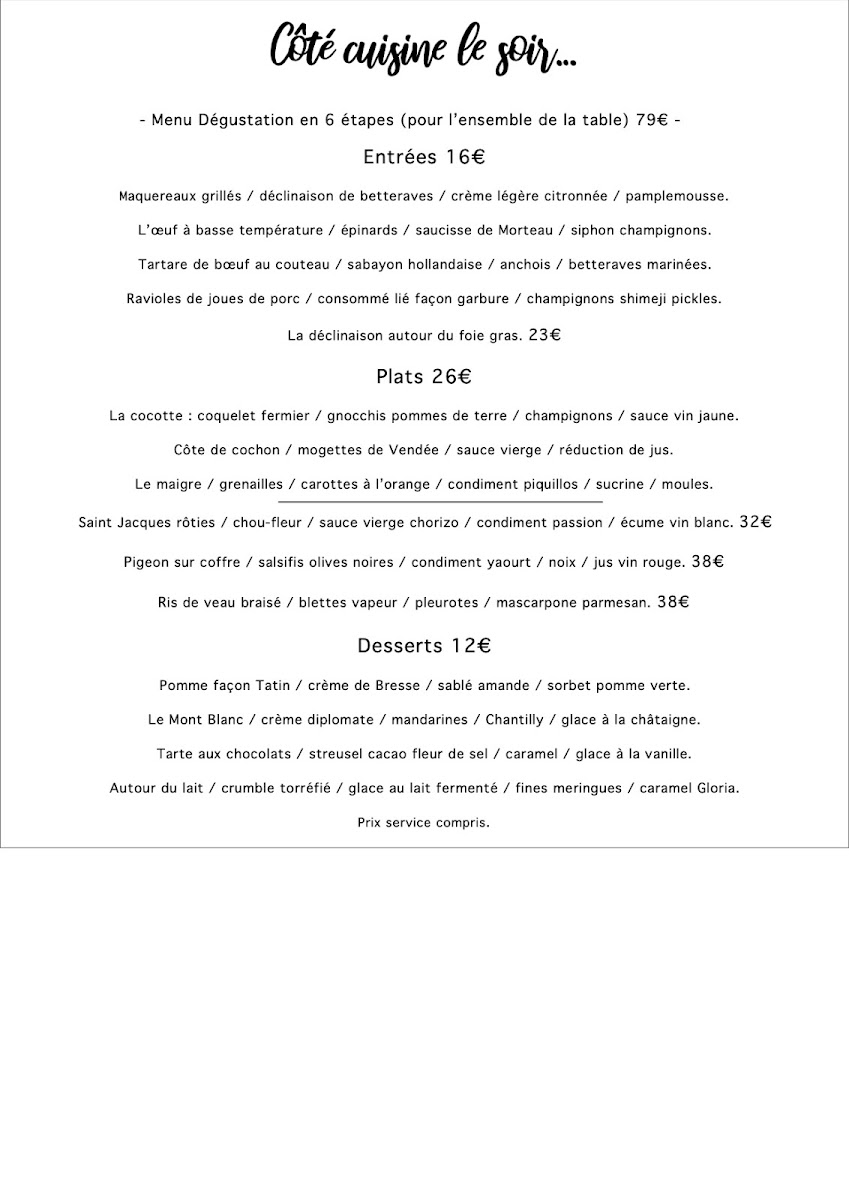 Welcome to Le Cotte Rôti, a charming French bistro nestled in the heart of Paris. With a menu that beautifully showcases the essence of French cuisine, this establishment offers a delightful array of options that cater to both lunch and dinner. For lunch, diners can indulge in a Formule Déjeuner starting at just €22, featuring expertly crafted entrées and desserts. For dinner, the selection ranges from elegant entrées (€16-23) to masterfully prepared main dishes priced between €26-38.